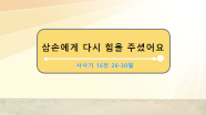 다 같이 큰 목소리로 설교 제목을 외쳐볼까요? “삼손에게 다시 힘을 주셨어요” |